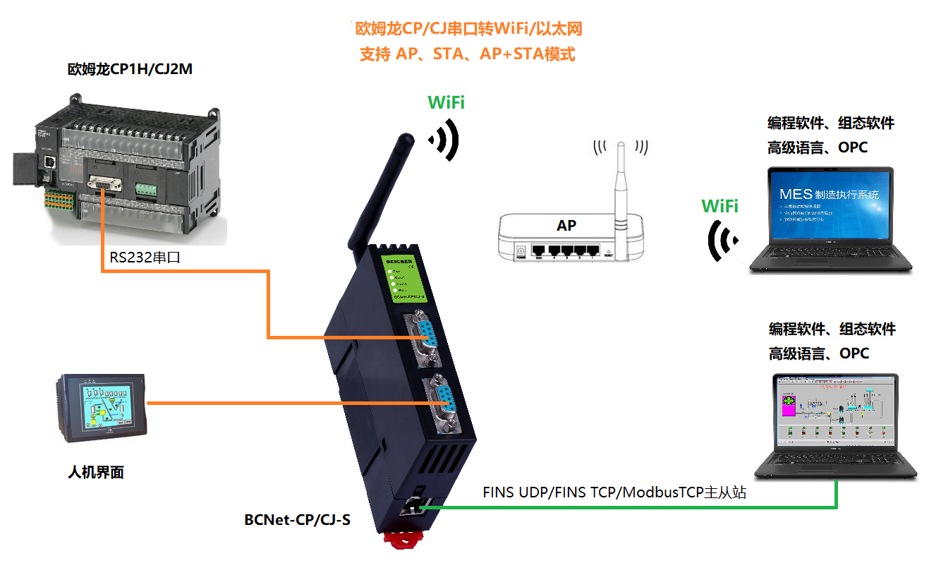 BCNet-CP/CJ-S用于歐姆龍CP1L/CP1E/CP1H/CJ1M/CJ2M/CS1G等PLC的以太網(wǎng)數(shù)據(jù)采集,非常方便構(gòu)建生產(chǎn)管理系統(tǒng)。模塊集成WiFi功能,支持AP模式、STA模式和AP+STA模式,帶膠棒和磁吸天線,方便構(gòu)建WiFi網(wǎng)絡(luò),直接通過WiFi進(jìn)行PLC編程、數(shù)據(jù)采集。
