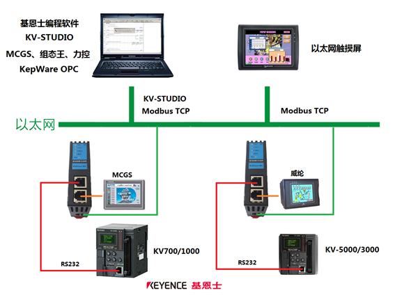 4、實(shí)現(xiàn)與基恩士KV STUDIO編程軟件產(chǎn)品的以太網(wǎng)通訊,通過以太網(wǎng)進(jìn)行程序的讀出/寫入(包括RUN中寫入功能)/比對,可編程控制器運(yùn)行監(jiān)視等功能。