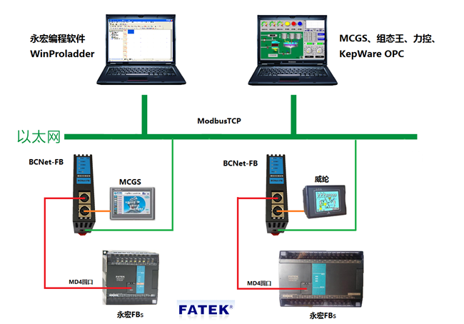 BCNet-FB采用模塊化設(shè)計(jì),出廠帶通訊線。不占用PLC編程口,即編程軟件/上位機(jī)軟件通過(guò)以太網(wǎng)對(duì)PLC數(shù)據(jù)監(jiān)控的同時(shí),觸摸屏可以通過(guò)復(fù)用接口X2與PLC進(jìn)行通訊。