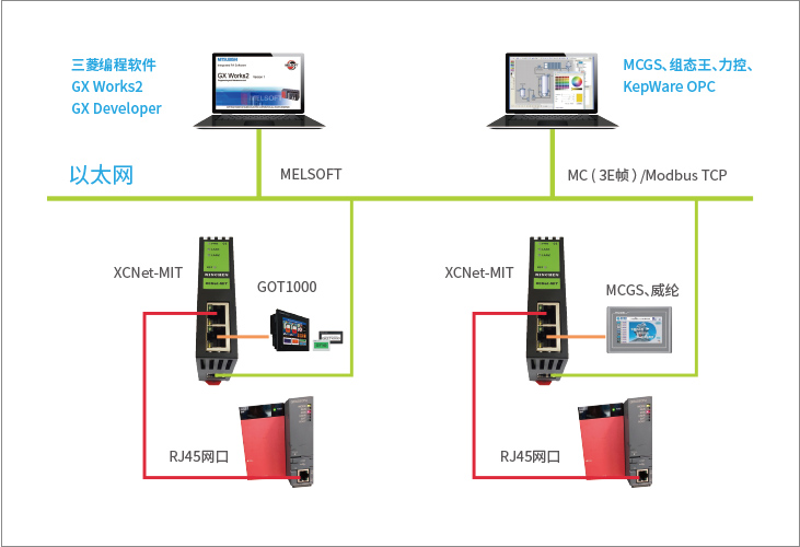 XCNet-MIT是一款高性能協(xié)議轉(zhuǎn)換網(wǎng)關(guān),用于三菱Q系列、L系列、R系列網(wǎng)口PLC的以太網(wǎng)數(shù)據(jù)采集,非常方便構(gòu)建生產(chǎn)管理系統(tǒng)。