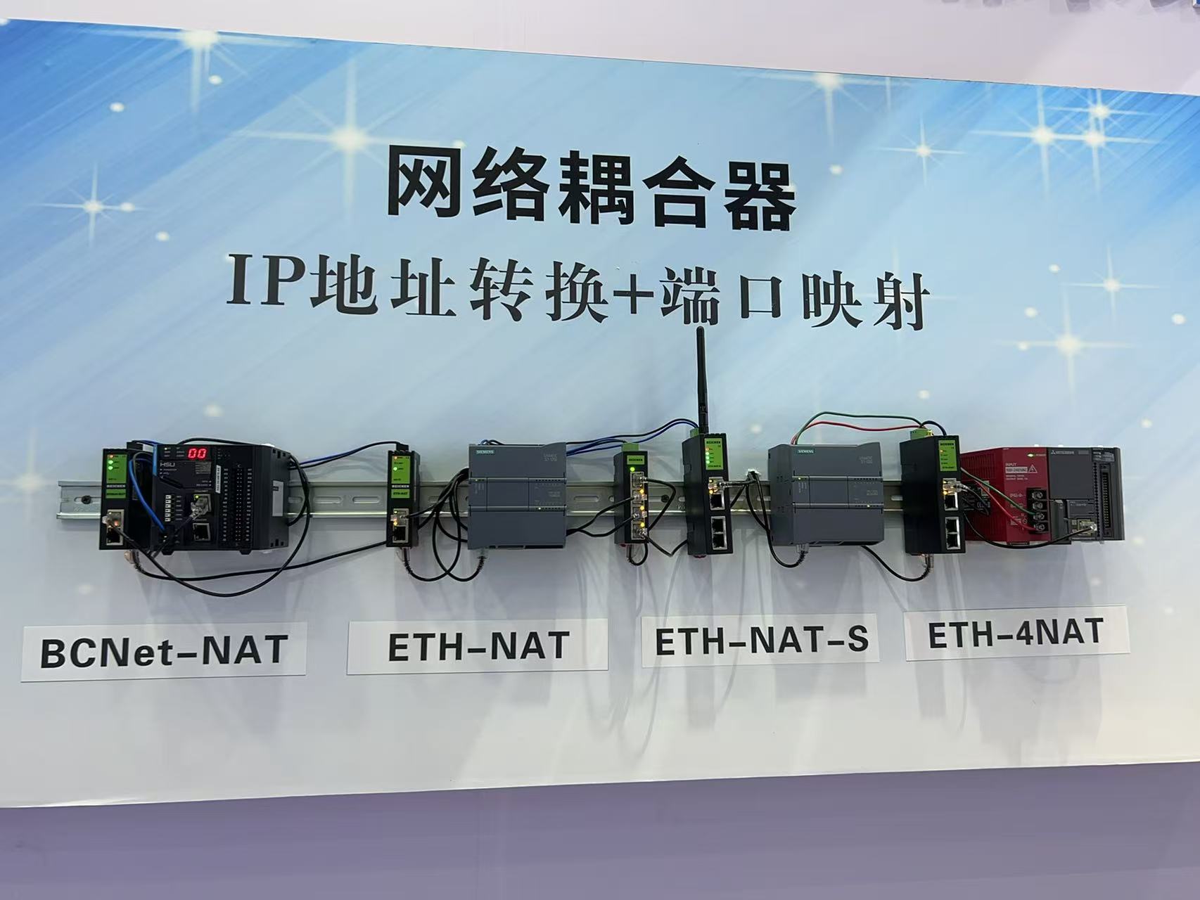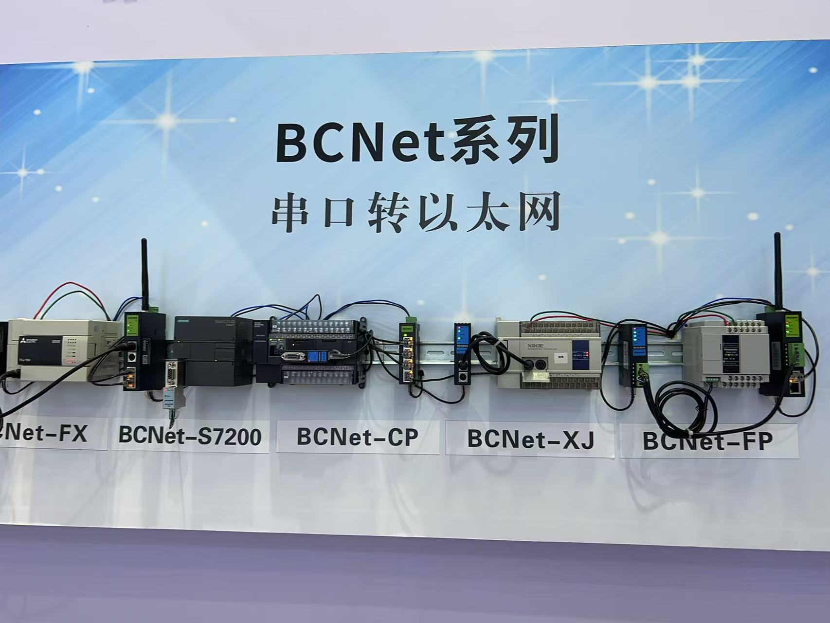 本次工博會,北辰展出了多款經(jīng)典的以太網(wǎng)通訊處理器(也稱“北辰模塊”)。BCNet系列產(chǎn)品(其中S系列為無線款)品種多、型號全,用于西門子、三菱、歐姆龍、臺達、松下、信捷、基恩士、羅克韋爾、永宏、匯川等多種PLC的串口轉(zhuǎn)以太網(wǎng)通訊,用于數(shù)據(jù)采集、SCADA上位監(jiān)控和設(shè)備聯(lián)網(wǎng)。